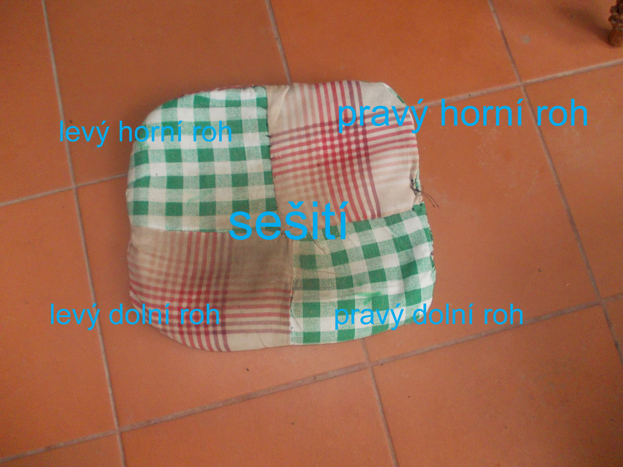 4. sešijeme oba tvary, které se nyní skládají každý z 2 kusů 1. látky a 2 kusů 2. látky